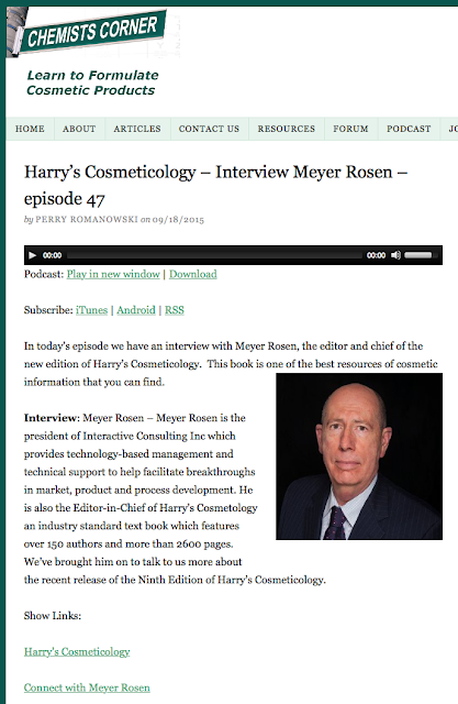 Mr. Rosen is a Chartered Chemist and Fellow of the Royal Society of Chemistry (London); a Fellow of the American Institute of Chemists and both a Nationally Certified Professional Chemist and Certified Professional Chemical Engineer. He is a member of the U.S. Society of Cosmetic Chemists (SCC) & the American Institute of Chemical Engineers. Meyer serves as an Advisor for David Smith, Executive Director of the SCC Advisory Committee. He is also Editor for U.S. & Canada and Editor-in-Chief for North and Latin America for EuroCosmetics Magazine in Germany. Mr. Rosen is Editor of the Delivery System Handbook for Personal Care and Cosmetic Products and Editor-in-Chief of Harry’s Cosmeticology, 9th Edition.